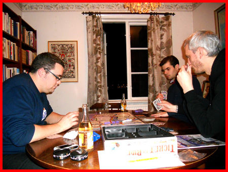 Spelhelgerna bjuder numera också ofta på brädspel av olika karaktär. Framförallt spelas partier i Carcassonne, Civilization, History of the World och Puerto Rico, men även mer lättsamma varianter som Zug um Zug (ja, vi väljer i en strävan efter att vara riktigt häftiga att använda oss av det tyska namnet på Ticket to Ride) och Mystery at the Abbey förekommer också frekvent. För att smälta kvällens intryck dineras allt som oftast Estrella som sköljs ner med Trocadero och folköl.